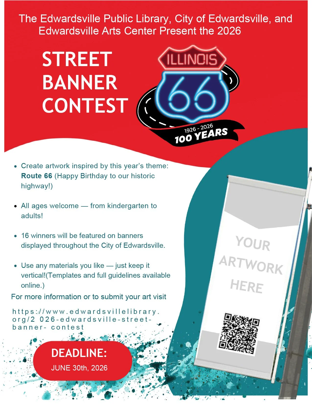 The 2026 Community Banner Contest is being coordinated through the Edwardsville Public Library. Click the flyer below to be directed to submission information.